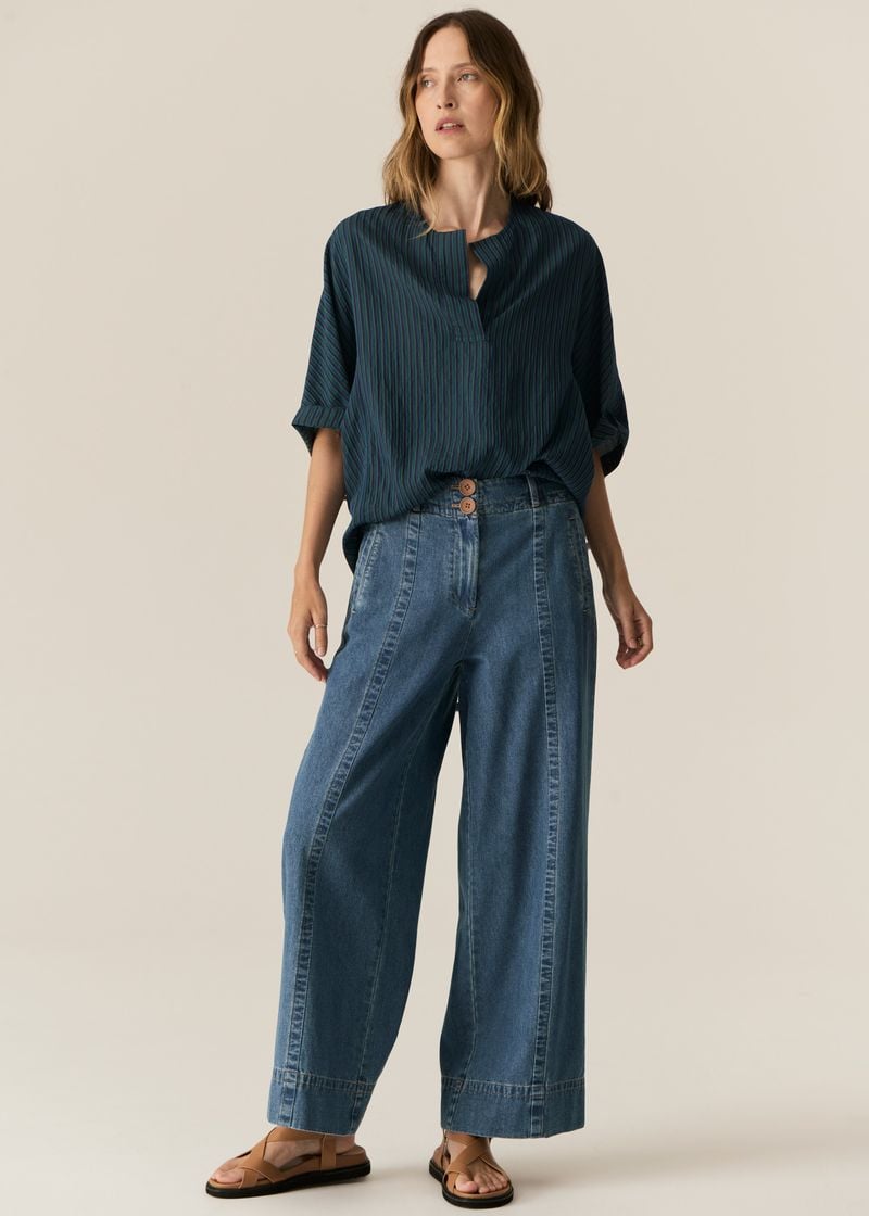 -Style back with the Adel Pant or as pictured with the Carsen Full Length Pant in Light Wash.