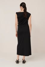 Utilising contemporary pattern-making, the Asymmetric Dress features a flattering, elegant drape.