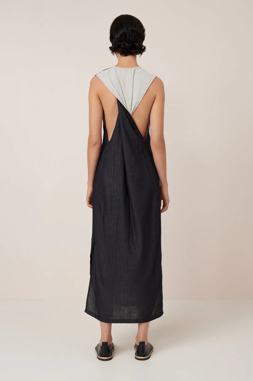 The twisted back detail creates a soft drape, while the side split adds ease and movement. The shoulder darts through the shoulder create shaping. Designed for a standard fit, it features a shell button opening at the neck. This midi-length dress can be worn alone or styled over your favourite tee.