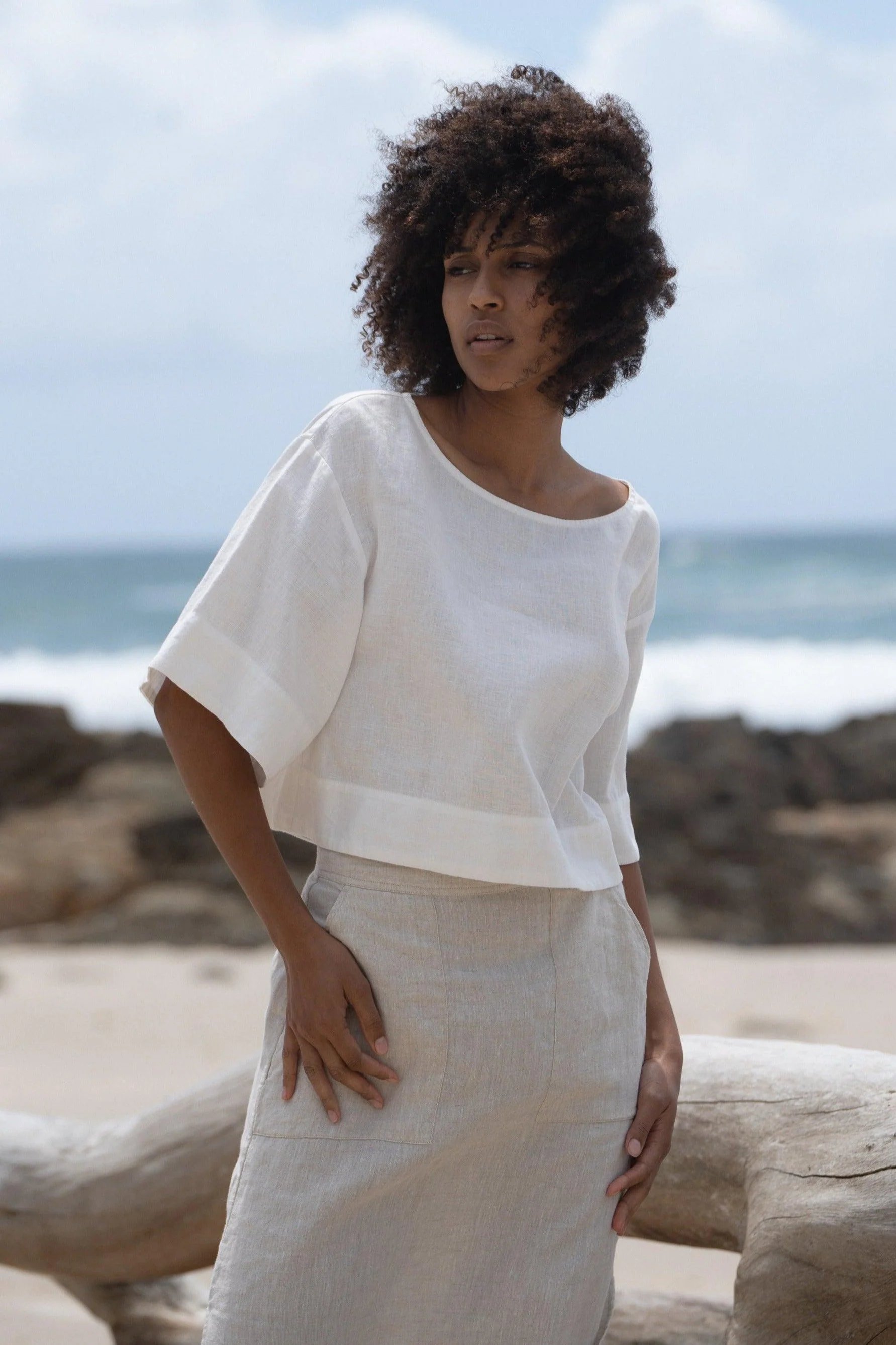 Featuring a relaxed, boxy shape and oversized sleeves, the MAYA top goes beautifully with high-waist linen pants , or your cropped Denim Jeans.