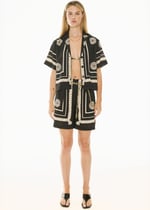 Made from a linen blend featuring our in-house designed Buoy Print, the Tangle Shirt features a scarf style placement print that feels like Summer.
